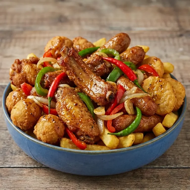 The ultimate sharer. Packed with Spare Ribs, Wings, Chicken Pieces, Nuggets, Balls, Sausage, and Chips, all tossed in our signature spice mix.