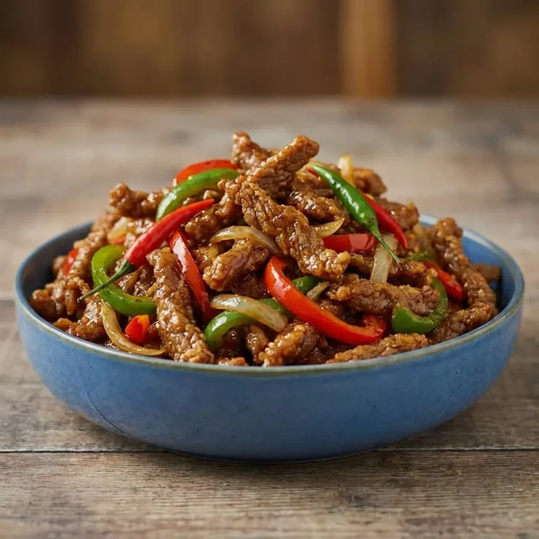 Deep-fried crispy beef strips wok-tossed in a sticky, spicy, and sweet Peking-style chilli sauce with fresh carrots and peppers.